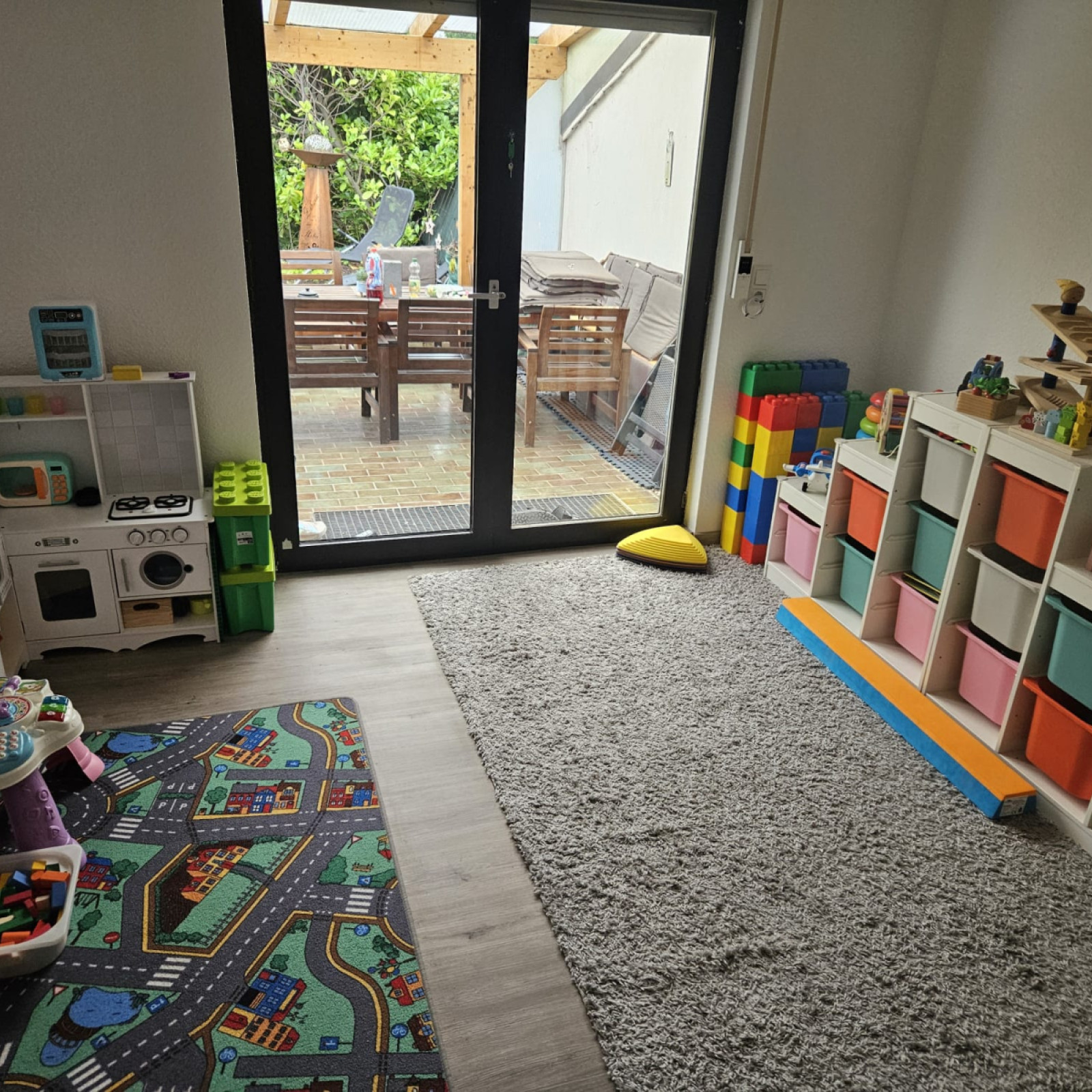 Die Räume meiner Kindertagespflege bieten den Kindern viel Platz zum Toben, Spielen und Schlafen. Es stehen zwei liebevoll eingerichtete Räume mit einer Fläche von insgesamt 65 Quadratmetern für vielfältige Entdeckungen bereit. In unserem Haus sind separate Räume für die Kindertagespflege eingerichtet. Die Einrichtung ist modern und mit der kindgerechten Ausstattung fühlen wir uns hier jeden Tag wohl. Sicherheit ist beim Spielen wichtig und so sind die Räume mit verschiedenen Features ausgestattet, die unbekümmertes Spielen ermöglichen.
